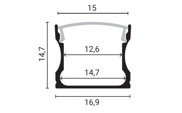 ALUMINIUM PROFILE FOR LED STRIP SILVER BODY/WHITE REFLECTOR 2m 17.2×14.4mm